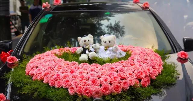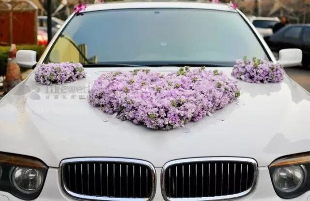 鲜花装饰,是车头装饰里用得最多的装饰。一般是用鲜花在车头用插花的方式,拼出心形、LOVE形、V形或者蝴蝶结等,只要你喜欢的形状,都可以尽管尝试尝试。