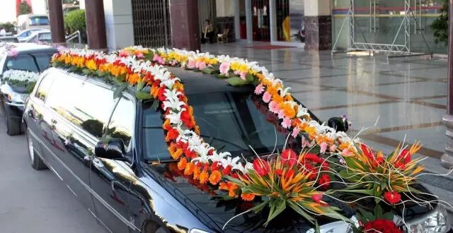 2.不要用太多种类、太多颜色的鲜花,会让车头看起来杂乱无章,反而没有美感了;